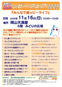 11月16日、岡山天満屋6階「みどりの広場」にて開催されたイベントでは、技工士会のブースに約200名の方々にお立ち寄りいただきました。